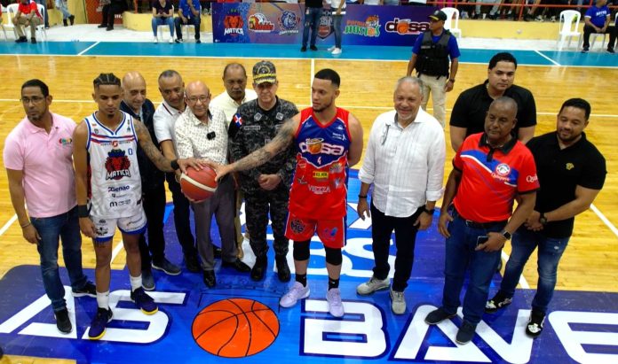 La Vega. – El director ejecutivo del Instituto Dominicano de Prevención y Protección de Riesgos Laborales (IDOPPRIL), doctor Fausto López Solís, realizó el saque de honor en el primer juego del XXX Torneo de Baloncesto Superior de La Vega.