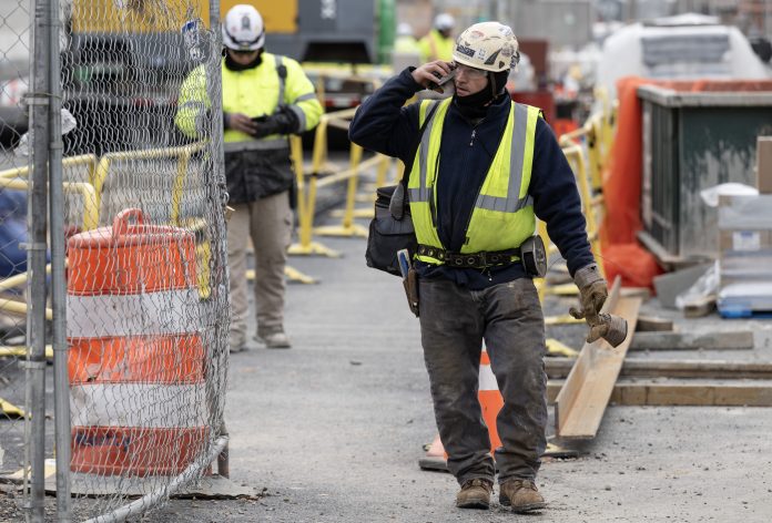 Imagen de archivo de trabajadores en una obra en Washington. EFE/EPA/LUKE JOHNSON