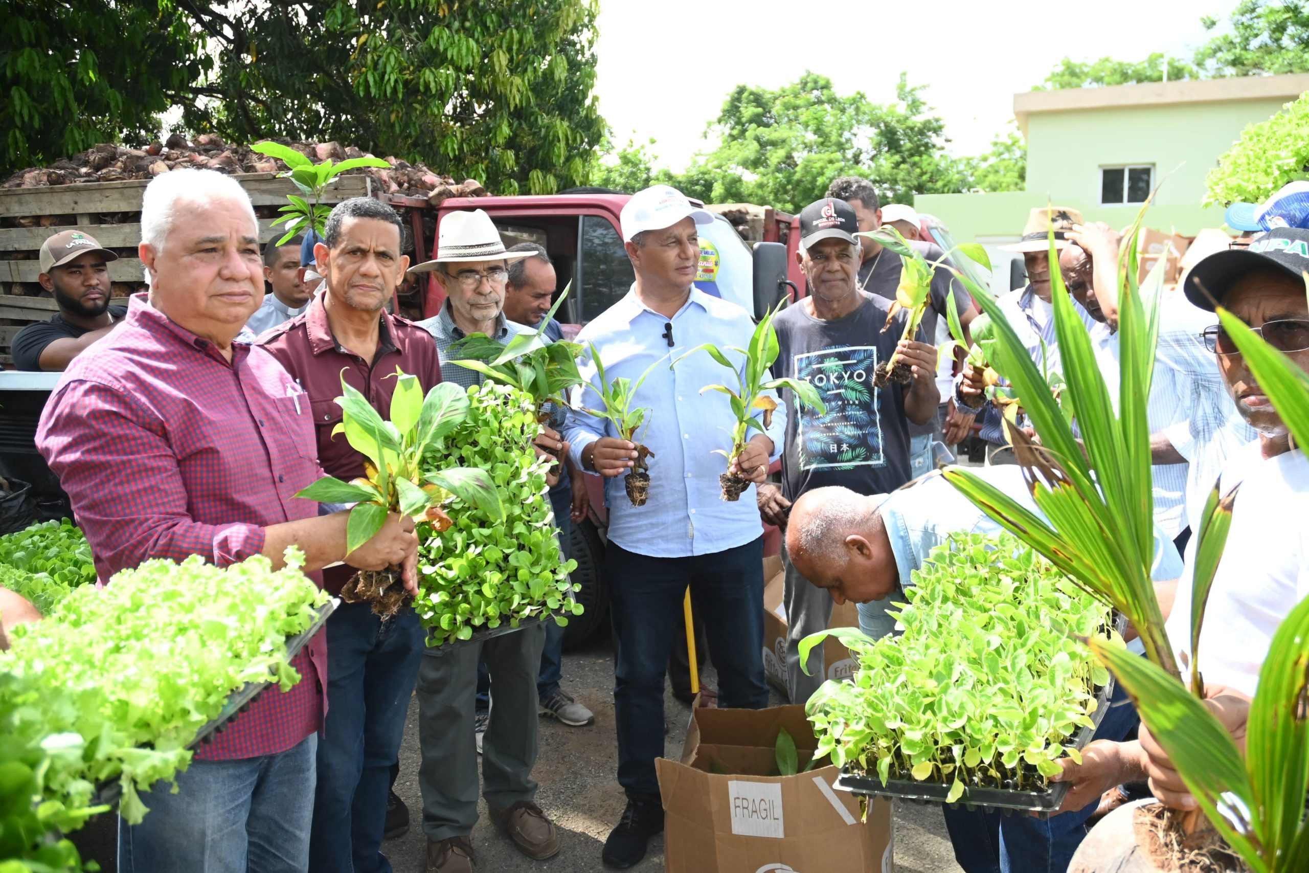 LA VEGA.- Por disposición del presidente de la República Luis Abinader y el ministro de Agricultura, Limber Cruz, se realizó aquí la entrega de material de siembra en auxilio a productores afectados por el pasado ventarrón que causó innumerables daños a miles de tareas sembradas de plátano y otros rubros en el Cibao central.