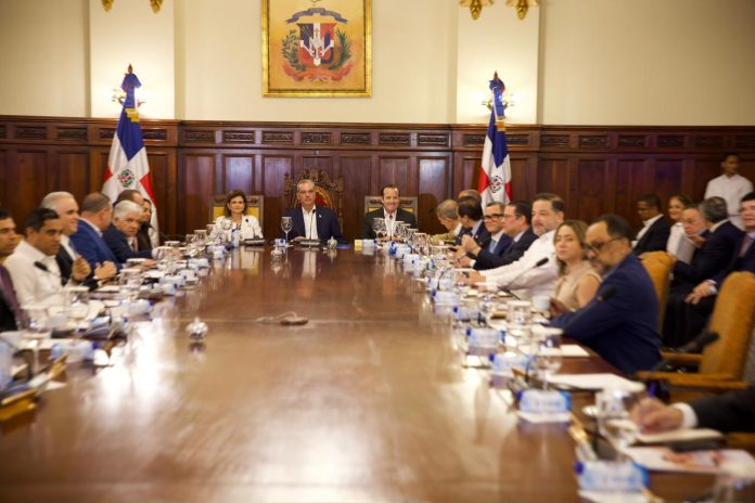 Santo Domingo.– El presidente de la República, Luis Abinader, y la vicepresidenta Raquel Peña encabezaron este jueves el 56.º Consejo de Ministros, una jornada de trabajo enfocada en revisar los avances de las prioridades de crecimiento económico y la estrategia nacional Meta RD 2036, con la participación de los principales líderes del sector productivo que coordinan sus comités estratégicos.