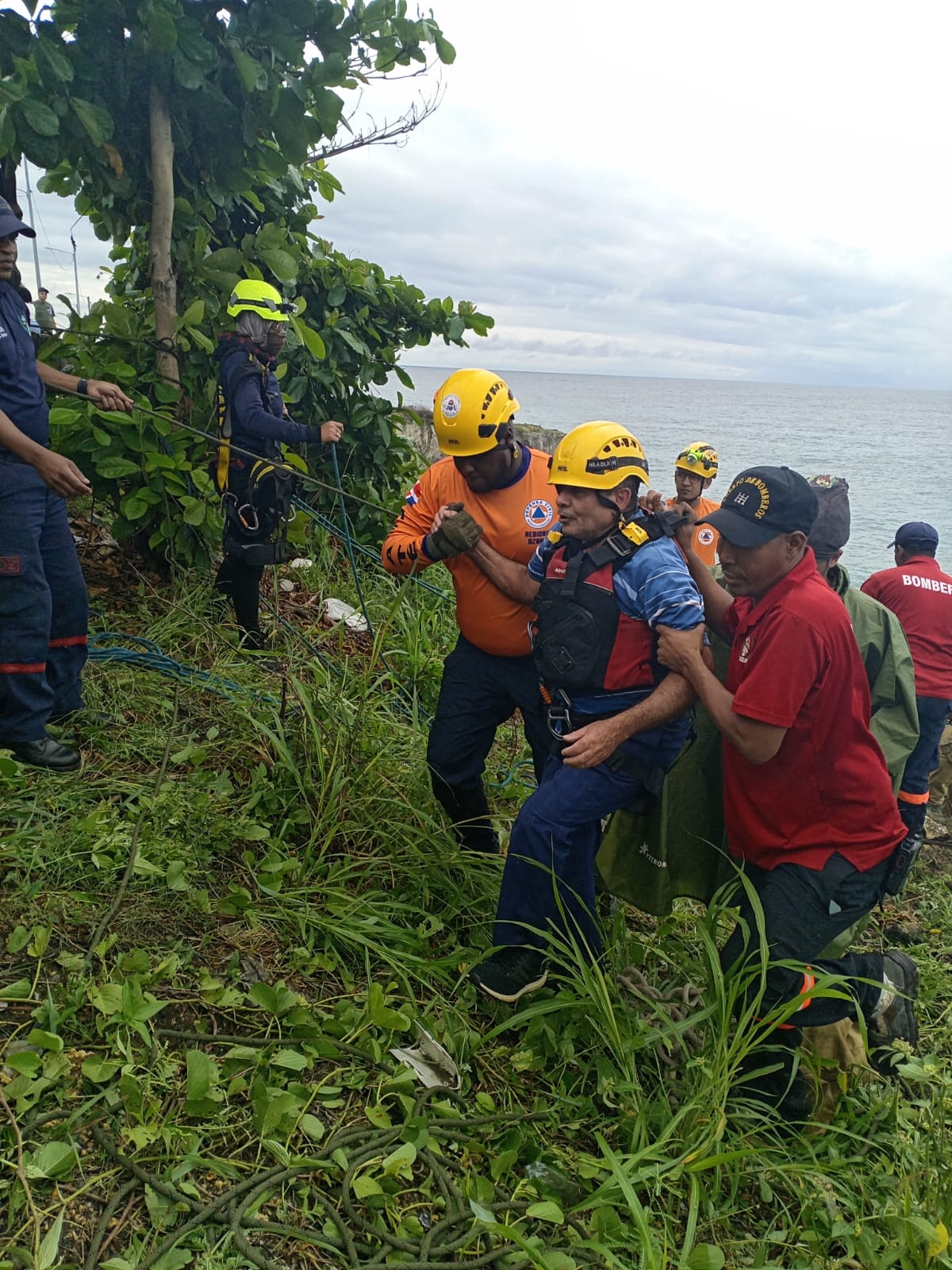 Santo Domingo Este.-Técnicos en búsqueda y rescate de la Defensa Civil, junto a miembros de los Bomberos de Santo Domingo Este rescataron con vida a un pescador que cayó al Mar Caribe en la proximidades de la avenida España de la citada ciudad.