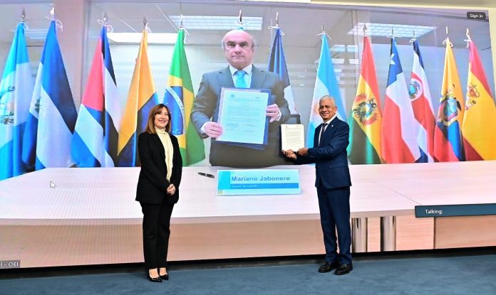 El convenio fue rubricado este martes por el presidente del Senado, Ricardo de los Santos y Mariano Jabonero (a través de la plataforma Zoom), presidente de la OEI, durante un acto celebrado en el auditorio de la sede legislativa, con la presencia de Catalina Andújar, representante en el país del organismo internacional.